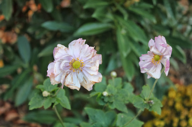 Although the Pee Gee Hydrangea's flowers have technically faded, I think their brown/pink hue is a lovely compliment to the yellow leaves in it's drooping habit.